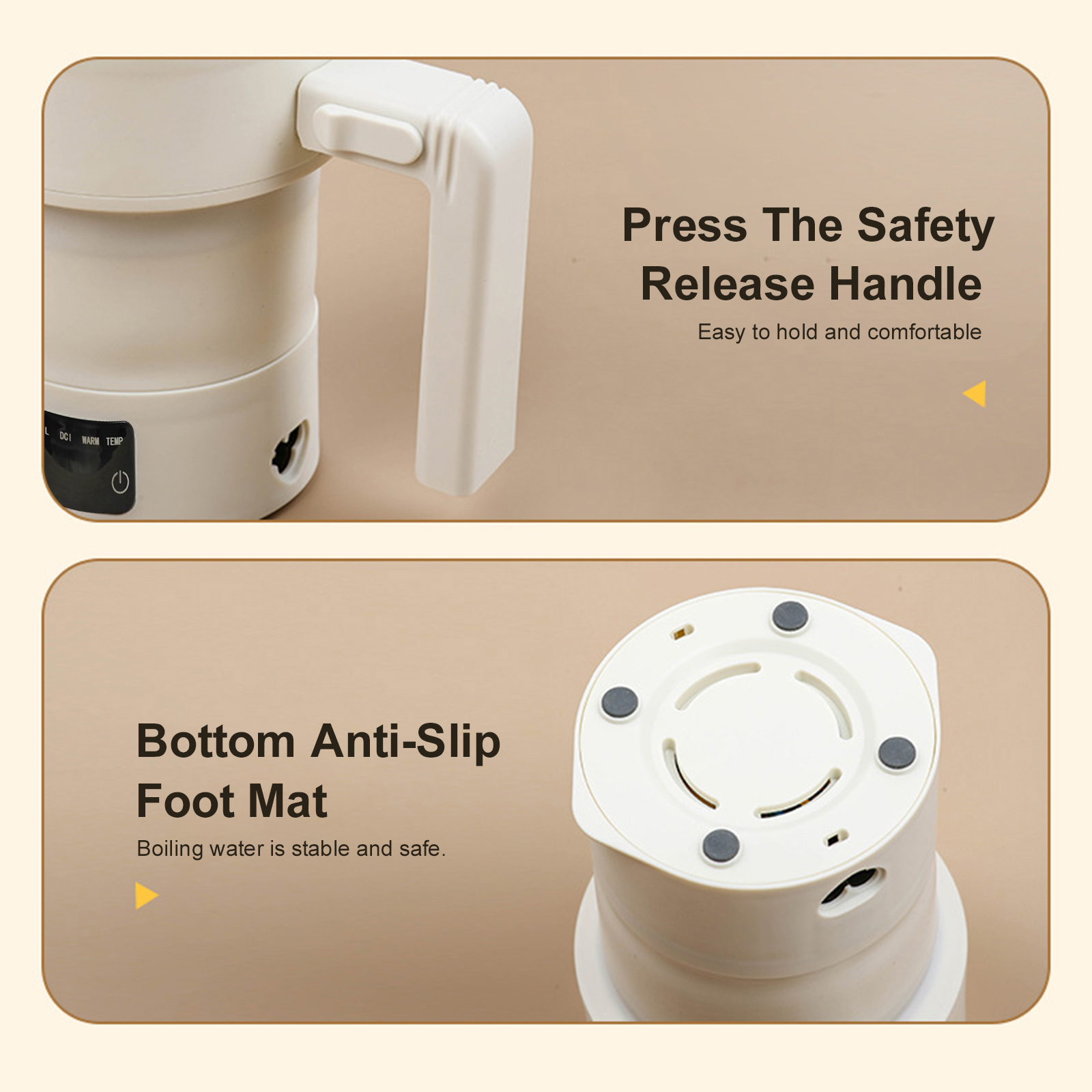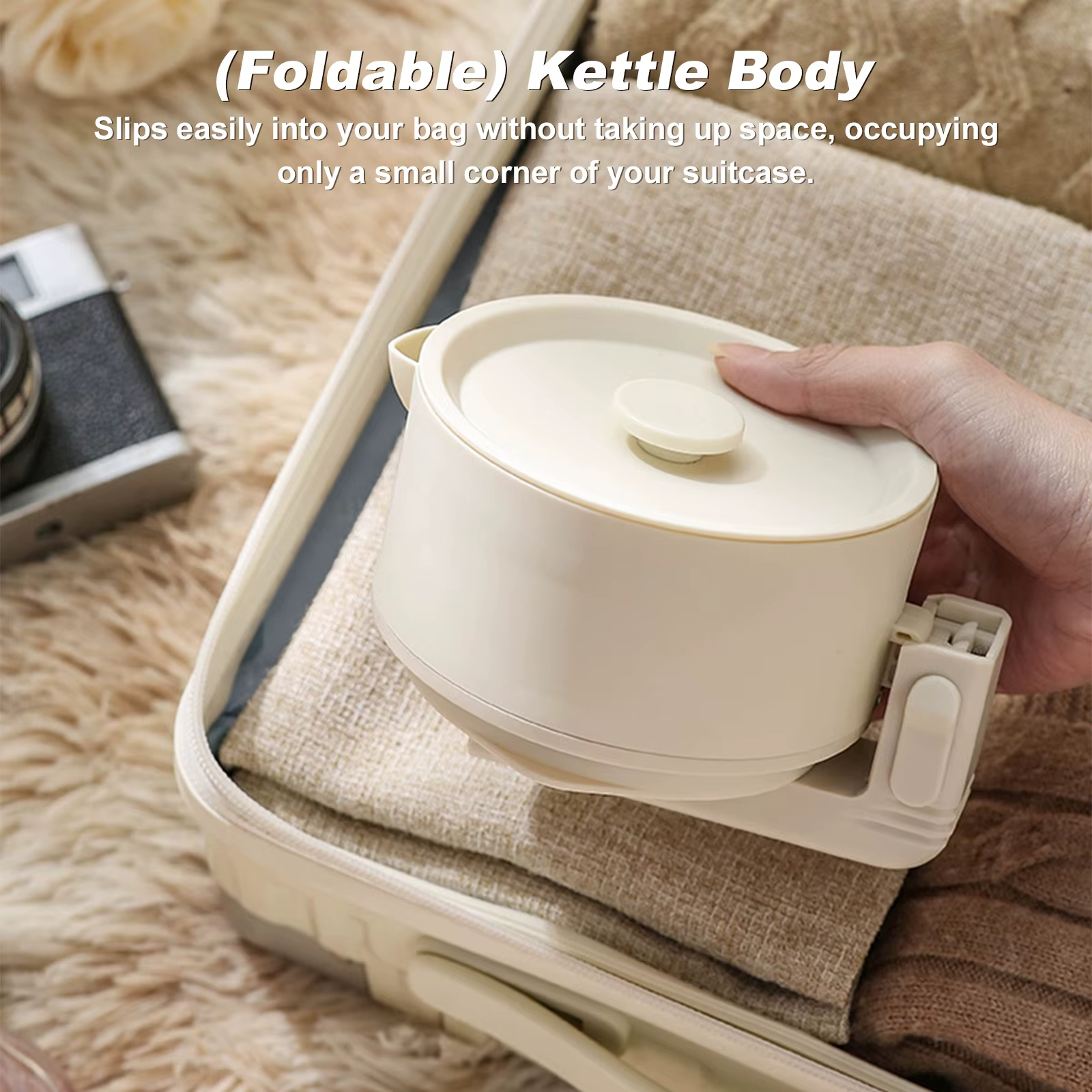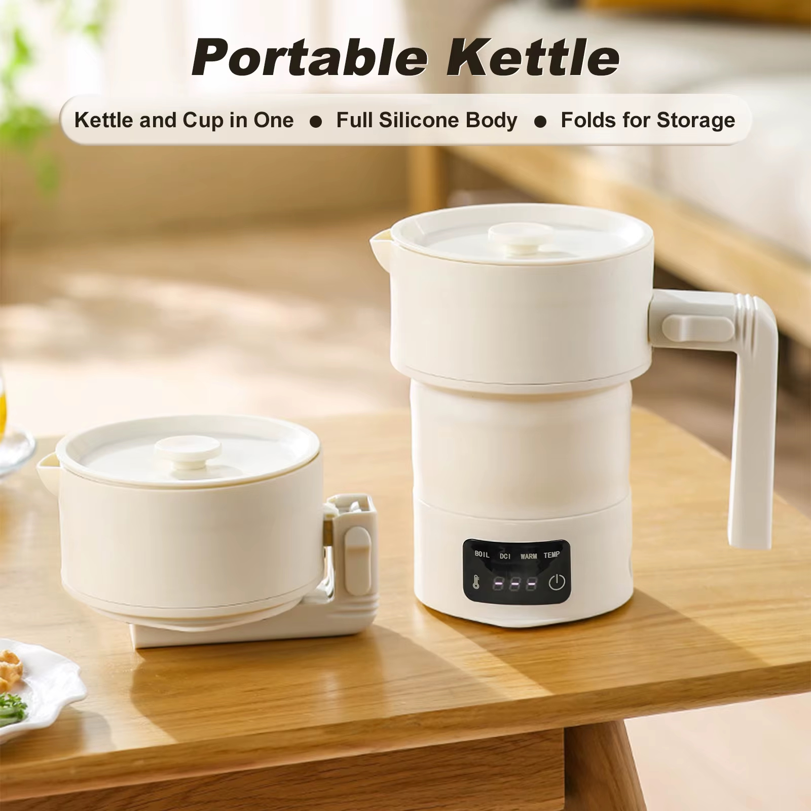 المميزات :1. تصميم محمول لسهولة السفر:تتميز غلاية السفر الكهربائية هذه بجسم من السيليكون القابل للطي وسعة صغيرة تصل إلى 600 مل، مما يجعلها صغيرة مثل زجاجة الماء.قم بتخزينها بسهولة في حقيبة الظهر أو الأمتعة، مما يزيد من المساحة المخصصة لك.