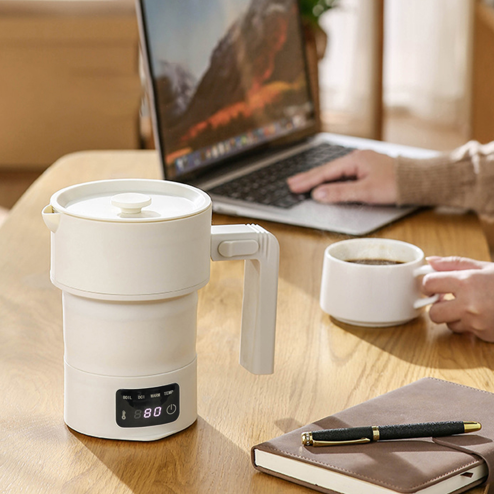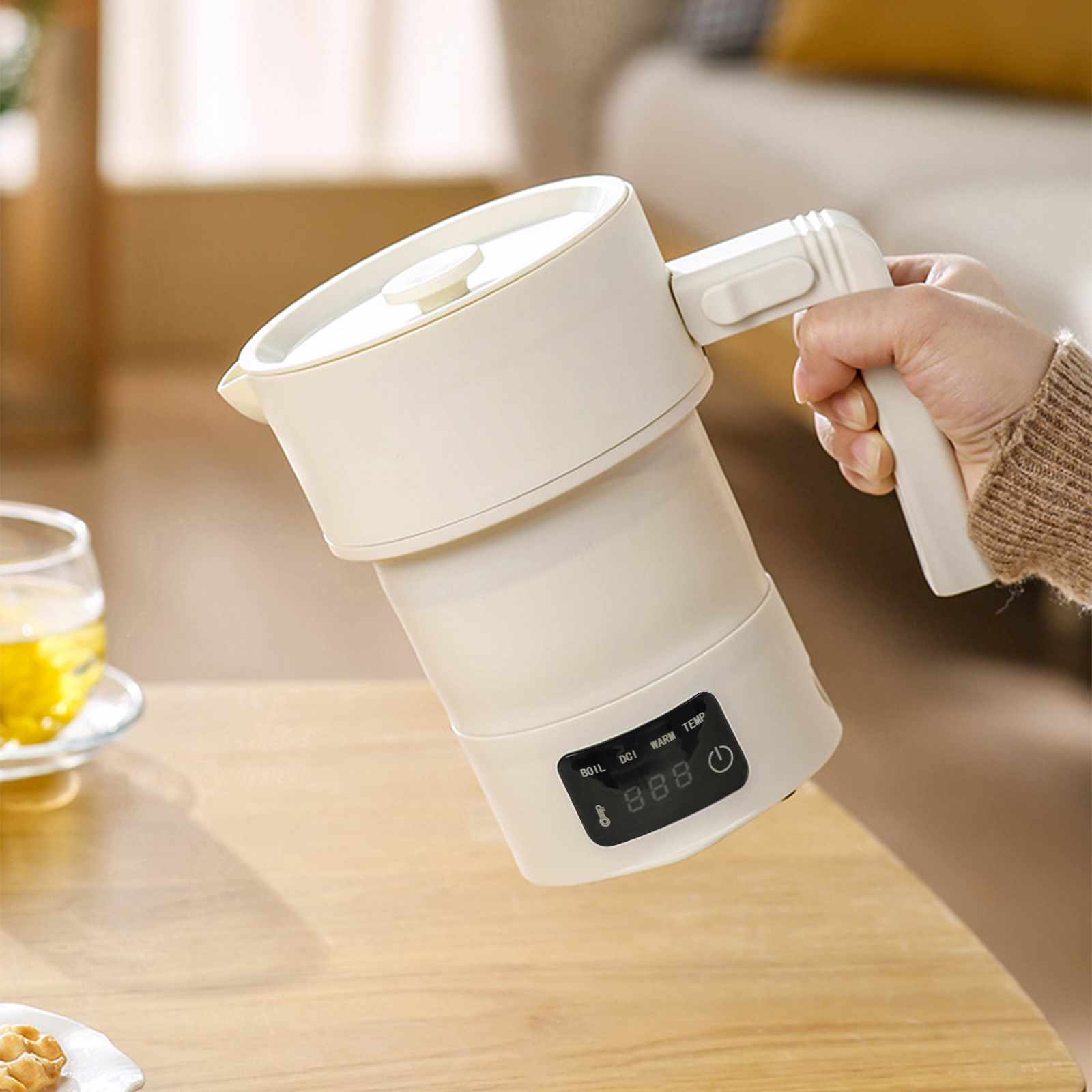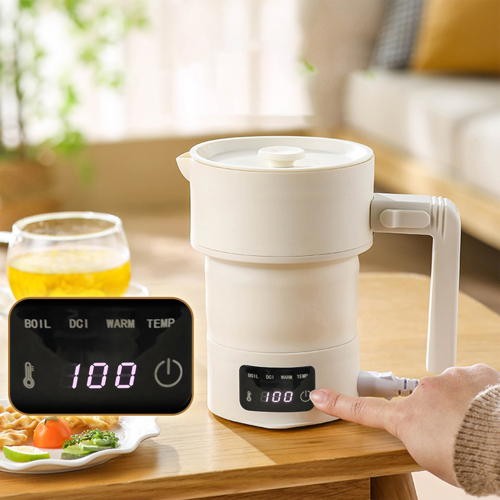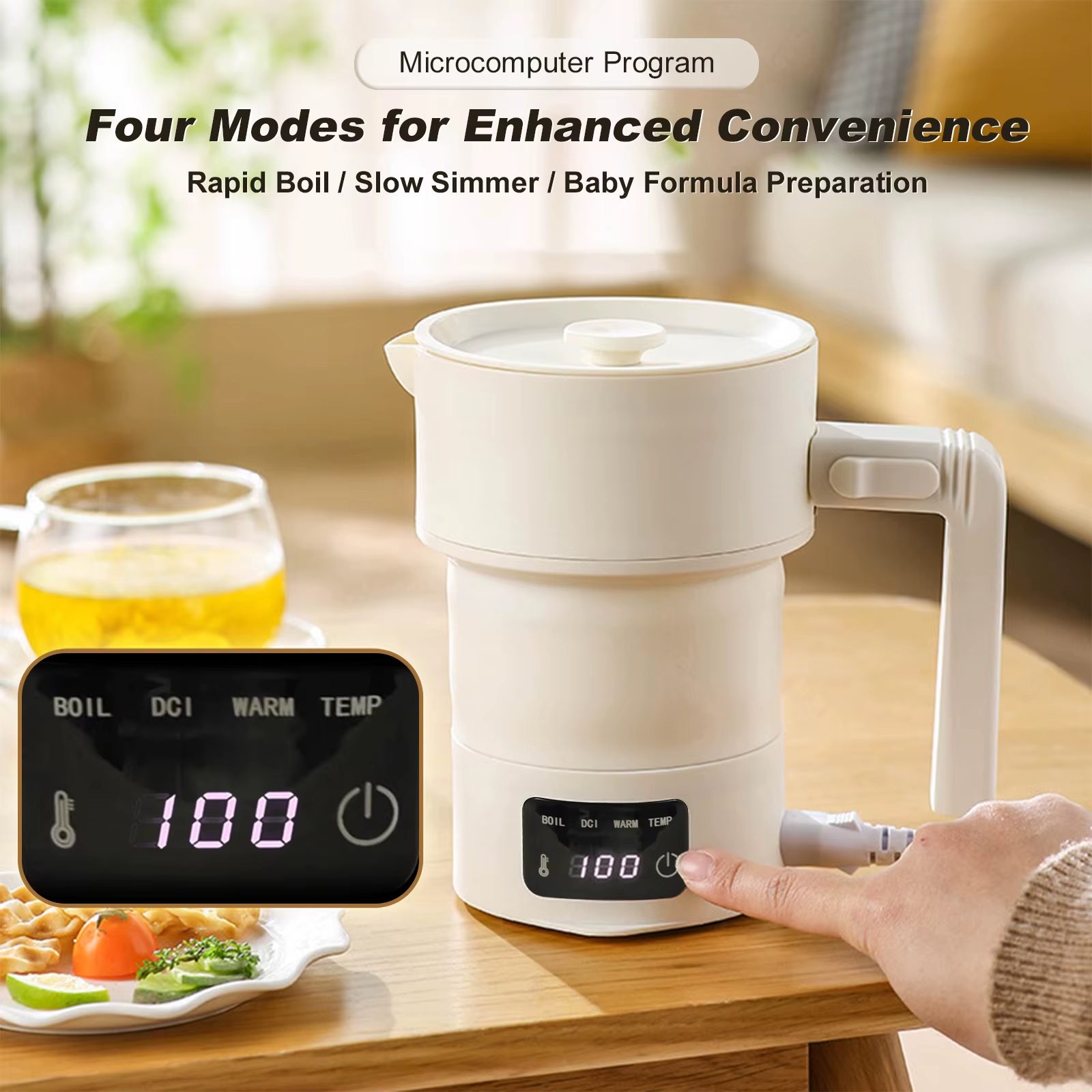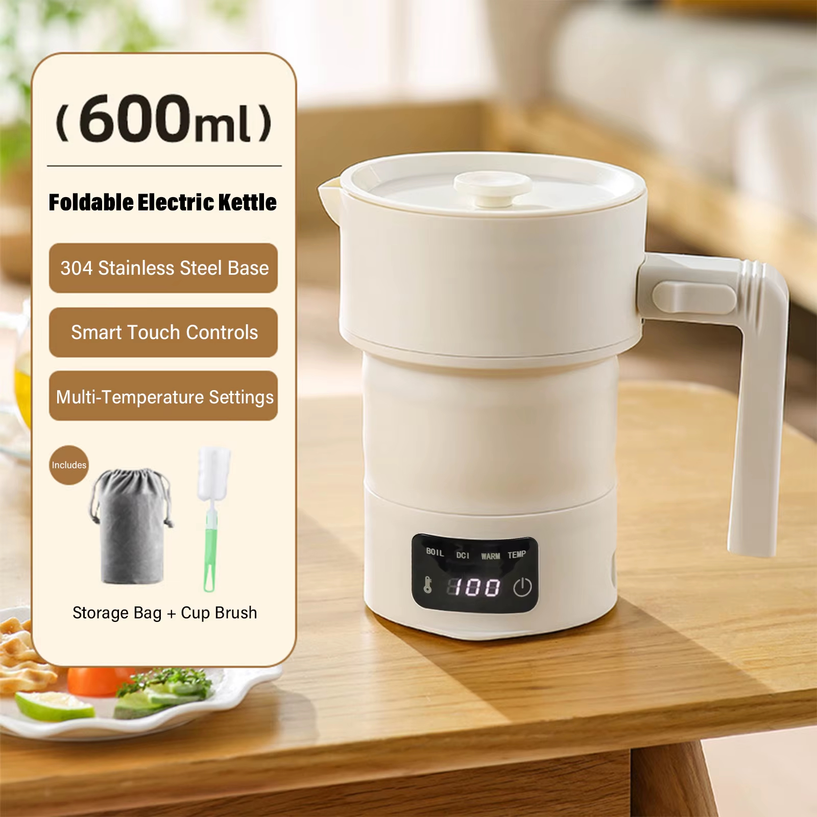 غلاية كهربائية قابلة للطي للسفر 600 مل، غلاية كهربائية محمولة مع 9 إعدادات مسبقة لدرجة الحرارة للتخييم والرحلات RV والبقاء في الفندق
