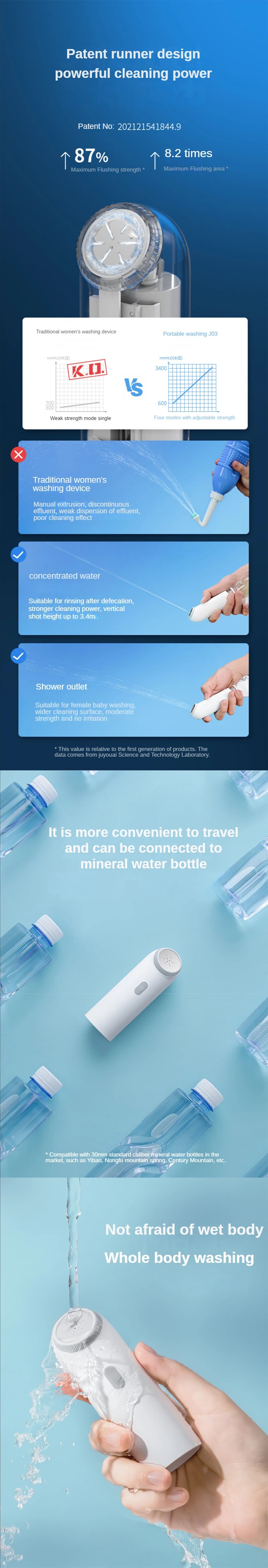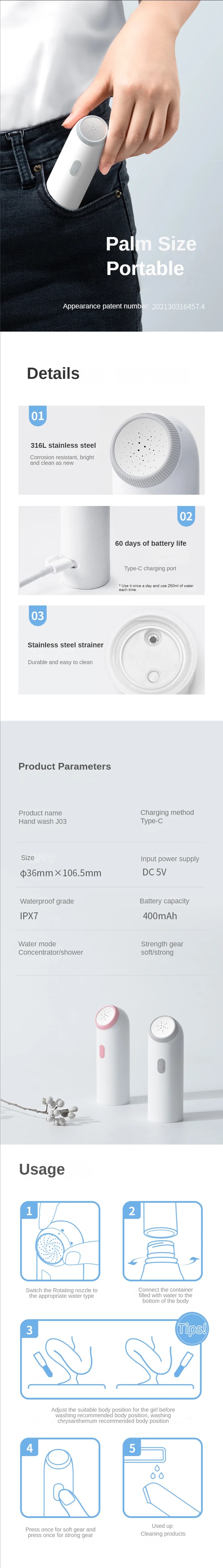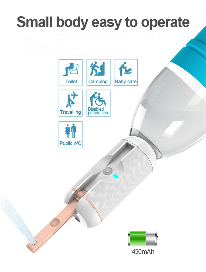 بخاخ بيديه كهربائي محمول ، منظف للسفر باليد مع زجاجة ماء ، بخاخ مرحاض قابل لإعادة الشحن للإناث والرضع