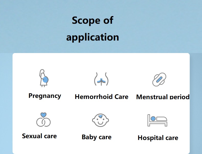 مجموعة متنوعة تستخدم للحمل والعناية بالبواسير وفترة الحيض والرعاية الجنسية ورعاية الأطفال والعناية بالمستشفى وما إلى ذلك.