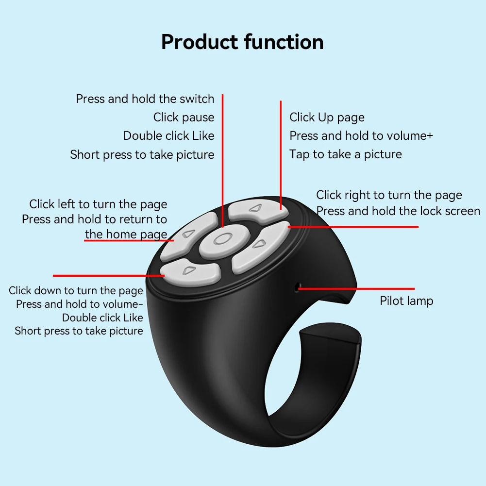 بفضل استهلاكه المنخفض للطاقة وعمر بطاريته الطويل، يوفر جهاز التحكم عن بُعد الحلقي هذا استخدامًا ممتدًا بشحنة واحدة. شحن لمدة ساعتين يمنحك ساعات من الاستخدام المتواصل.