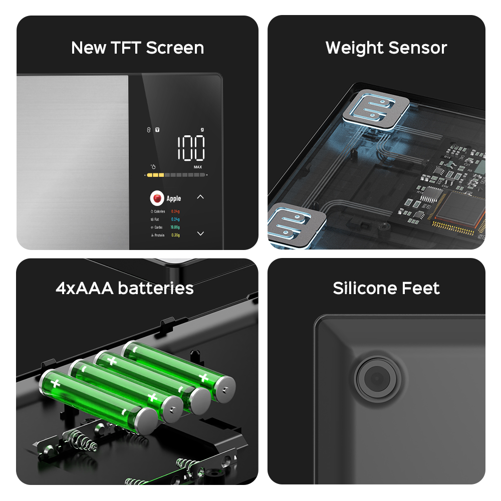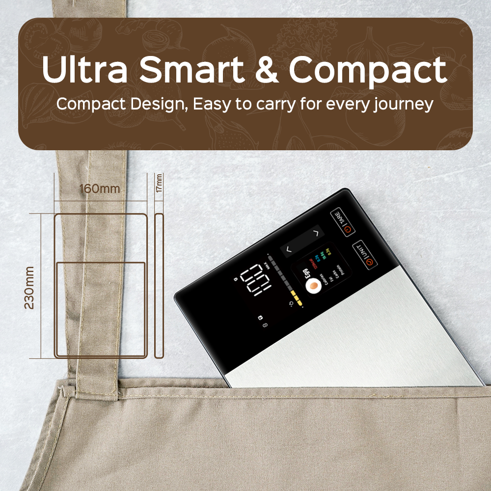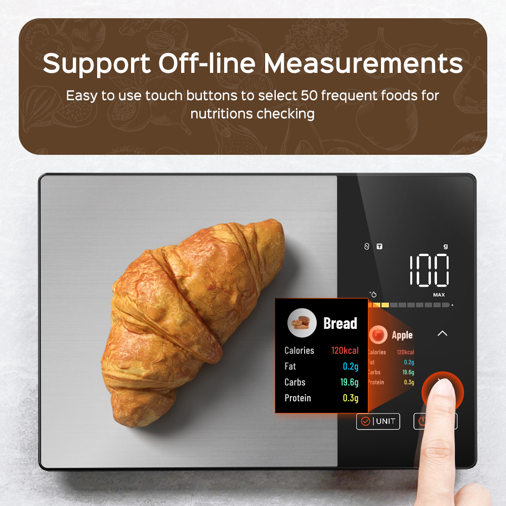مراقبة السعرات الحرارية في طعامك صارت سهلة LED تعرضك نوع الطعام ووزنه ووزن السعرات الحرارية · يدعمك أيضاً قياس السعرات الحرارية في المشروبات · تطبيق خاص لعرض تقرير بالأطعمة والسعرات الحرارية · مناسب لأصحاب الجسم والمهتمين بأسلوب طعام صحي · يتحمل حق وزن 5 كيلو · يعمل عن طريق البطاريات · ضمان سنه