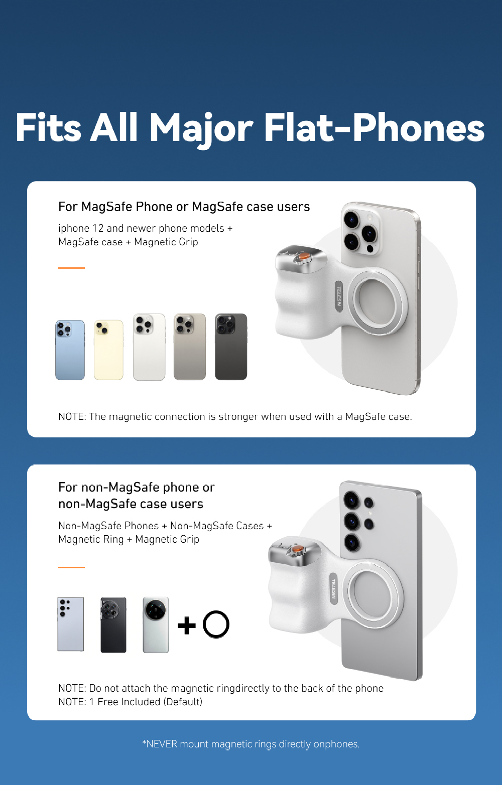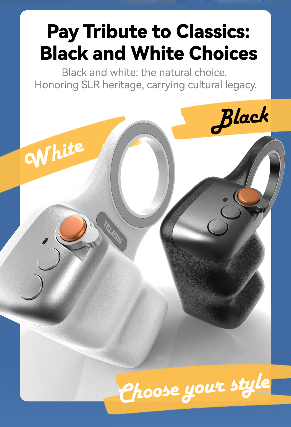 عنوان المنتج: كاميرا الهاتف المغناطيسية من TELESIN تلتقط قبضة اليد| مقبض بلوتوث للتحكم عن بعد| آيفون، سامسونج، هواوي، شياومي