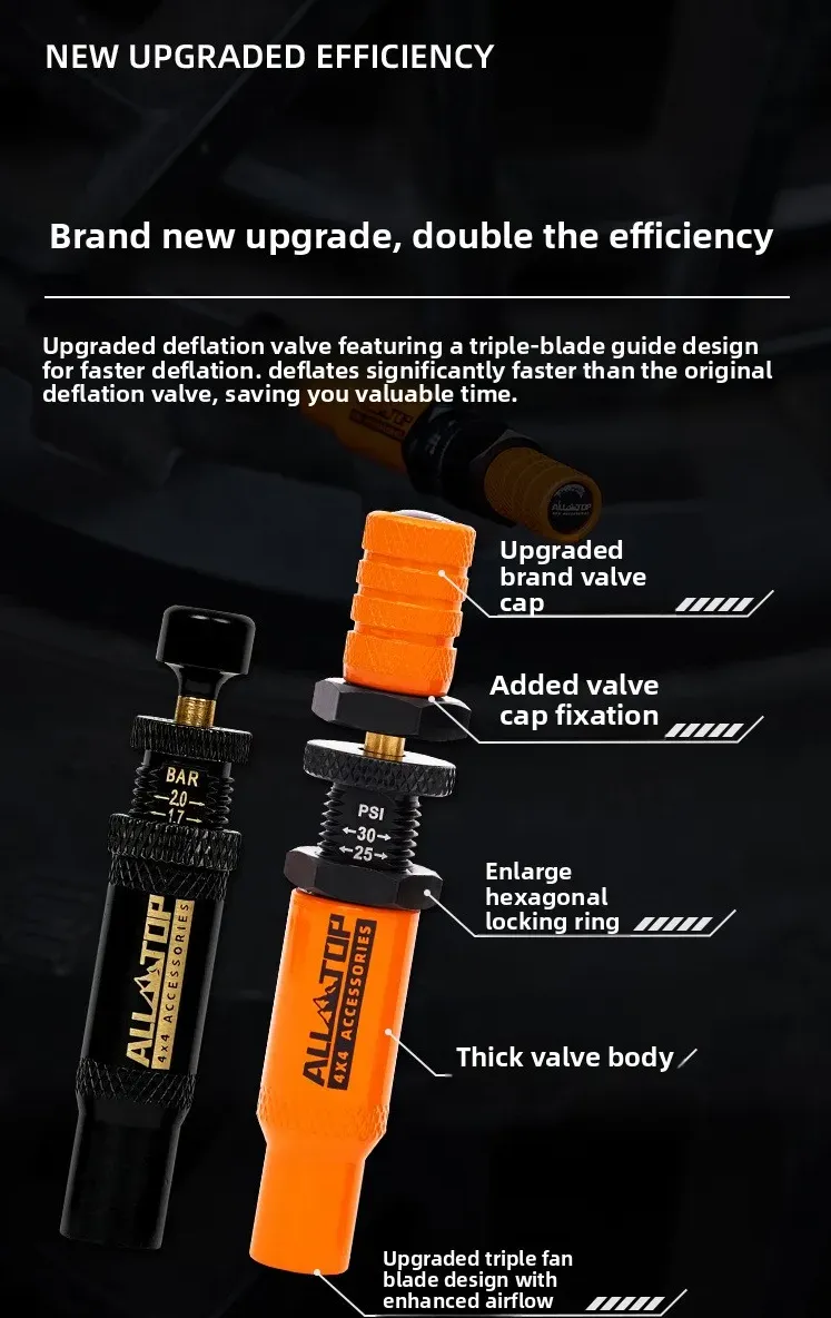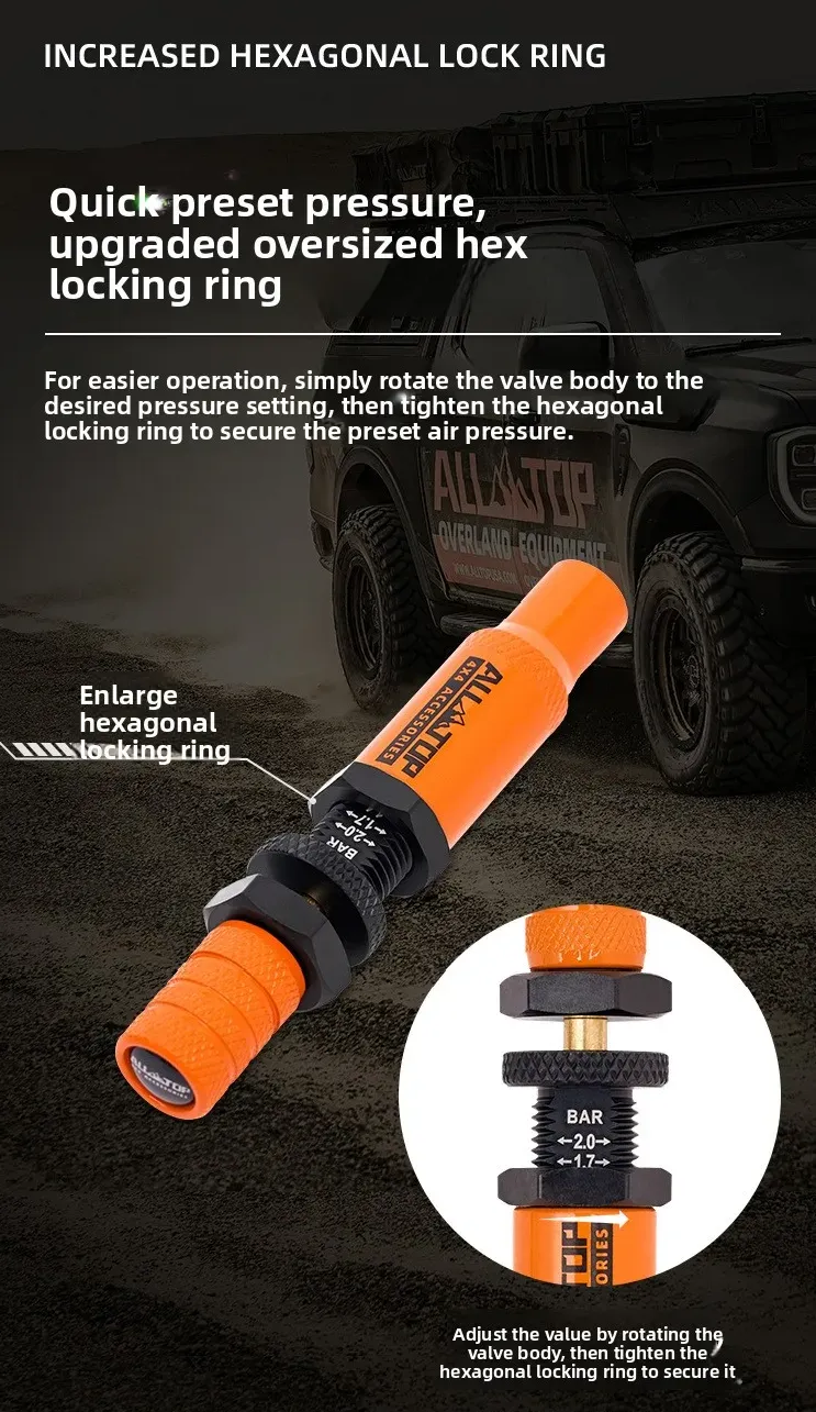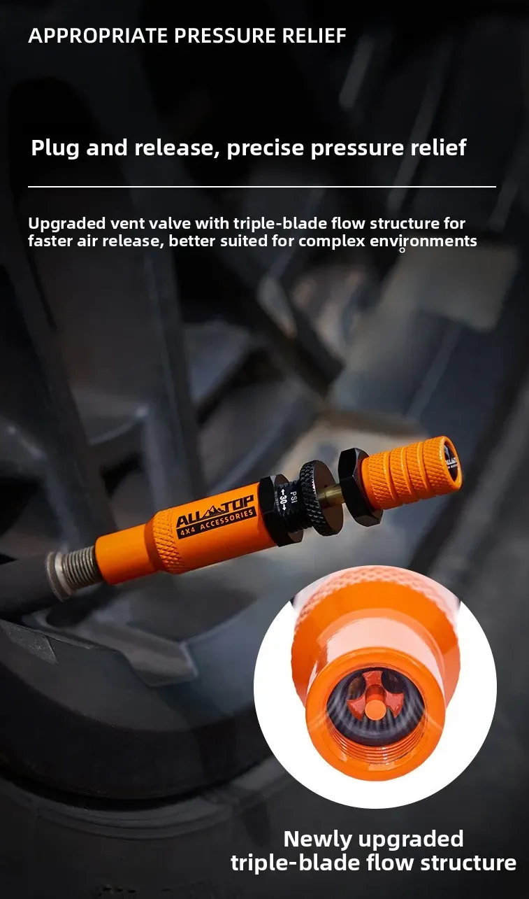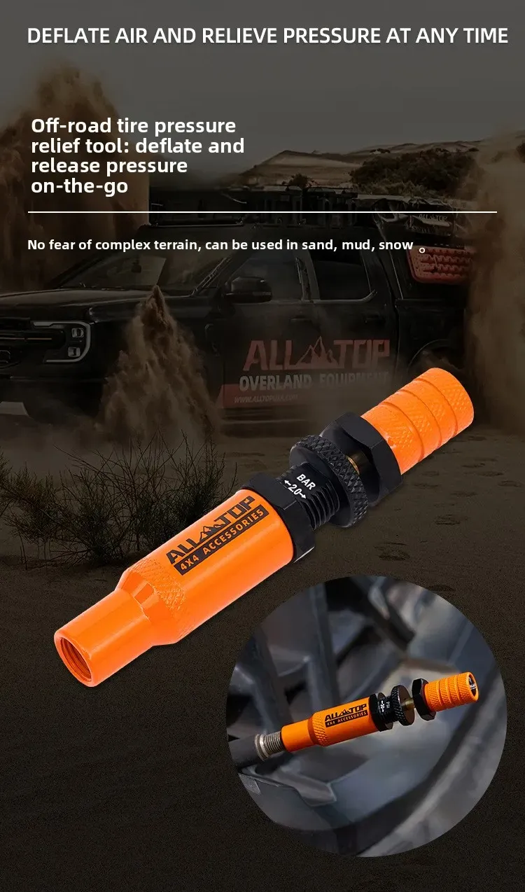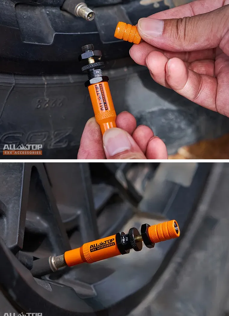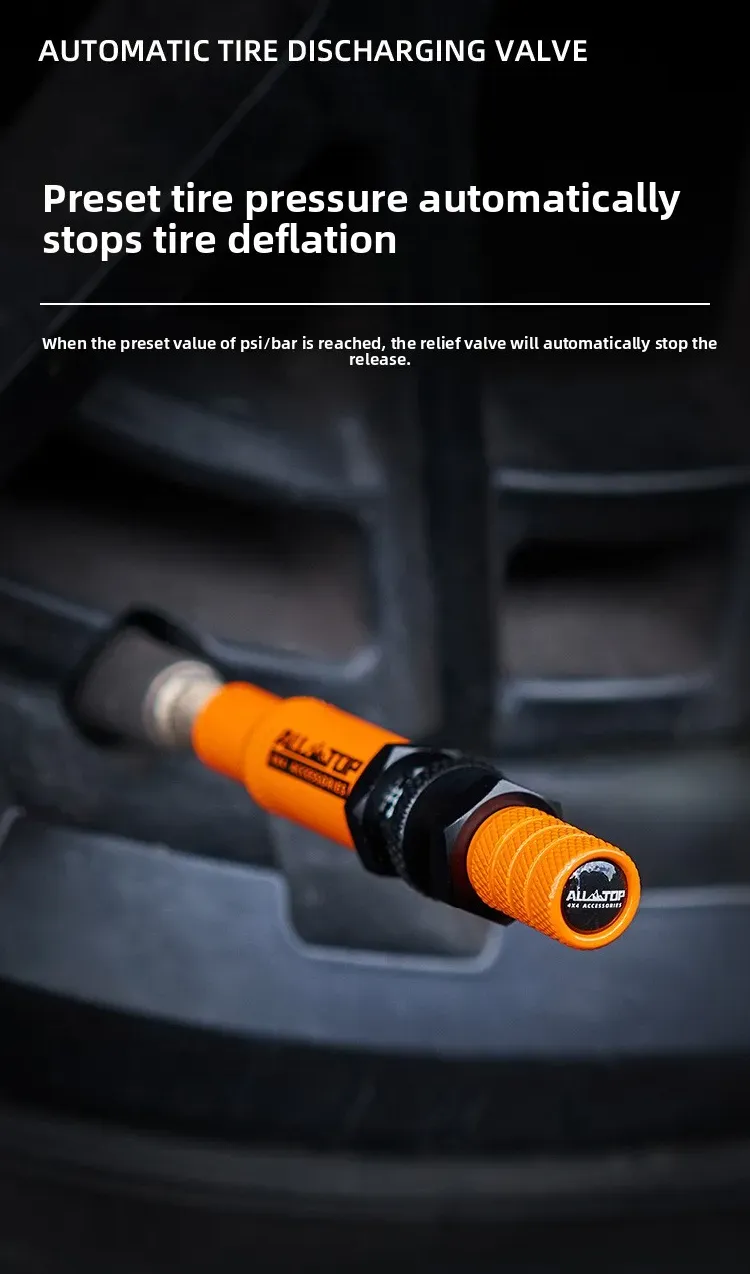 توفر أداة تفريغ الإطارات من ALLTOP إطلاقًا تلقائيًا للضغط، مما يجعل تفريغ الإطارات أسهل وأسرع للطرق الوعرة الصحراوية.